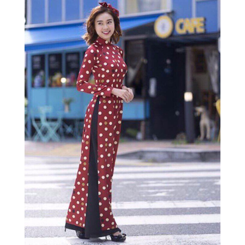 Co Big Size 5xl Ad178 Ao Dai Truyền Thống Cổ điển Co Ba Sai Gon Chấm Bi Nền đỏ Kem Quần Thời Trang Ao Dai Cach Tan đẹp