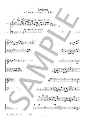 楽譜 Lemon ヴァイオリン チェロ二重奏 無伴奏 米津 玄師 ヴァイオリン 初 中級 Piascore 楽譜ストア