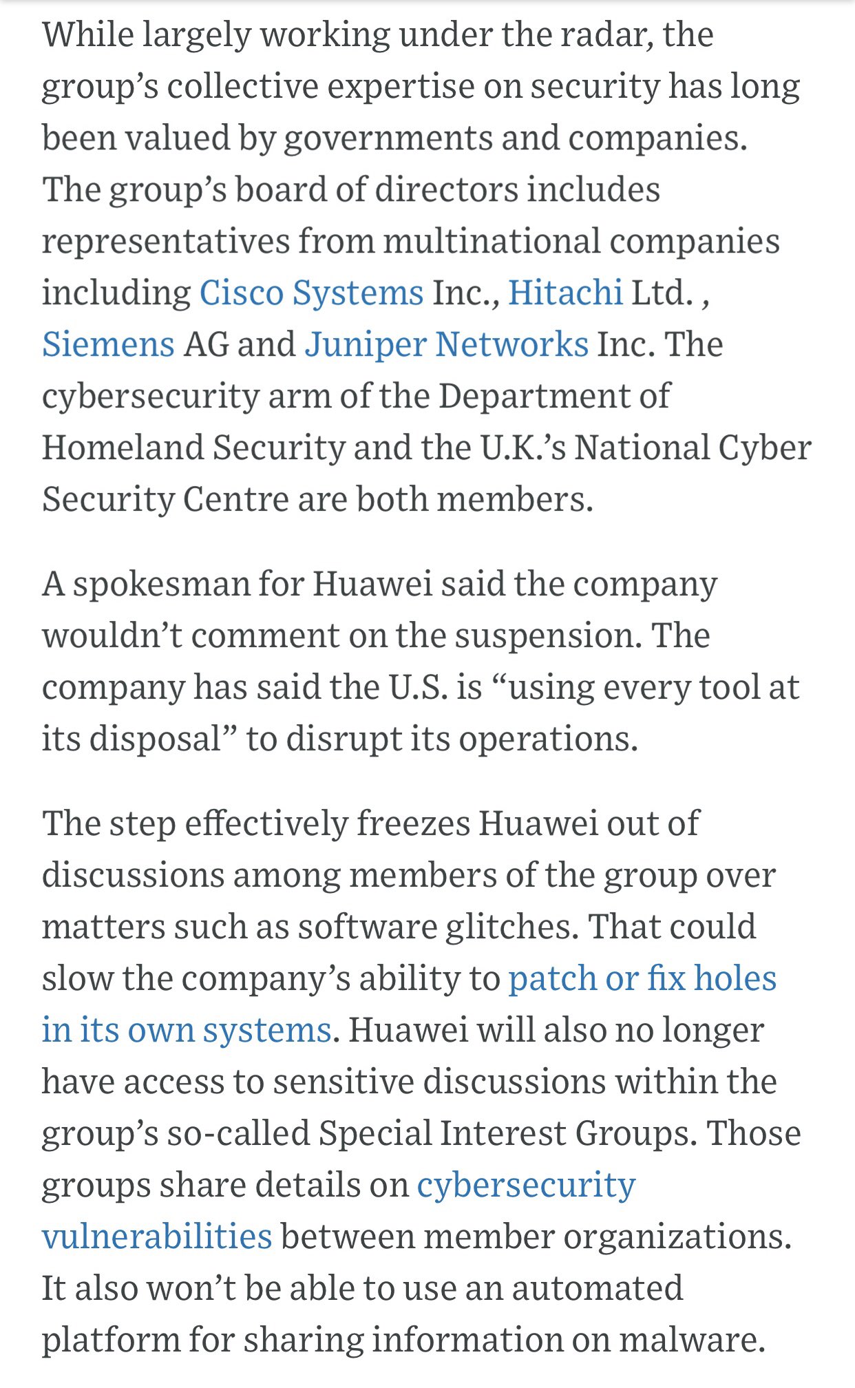方舟子on Twitter 华为被暂时中止了国际网络安全第一响应平台的会员资格 这意味着华为的产品将无法及时从该平台获悉安全漏洞和打补丁 这不是要让华为产品都让黑客去攻击嘛 有点讽刺